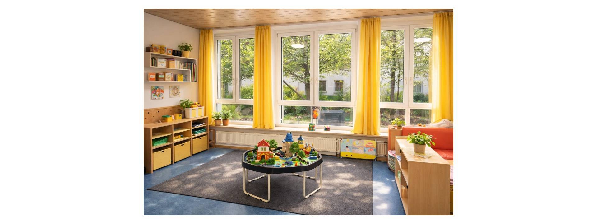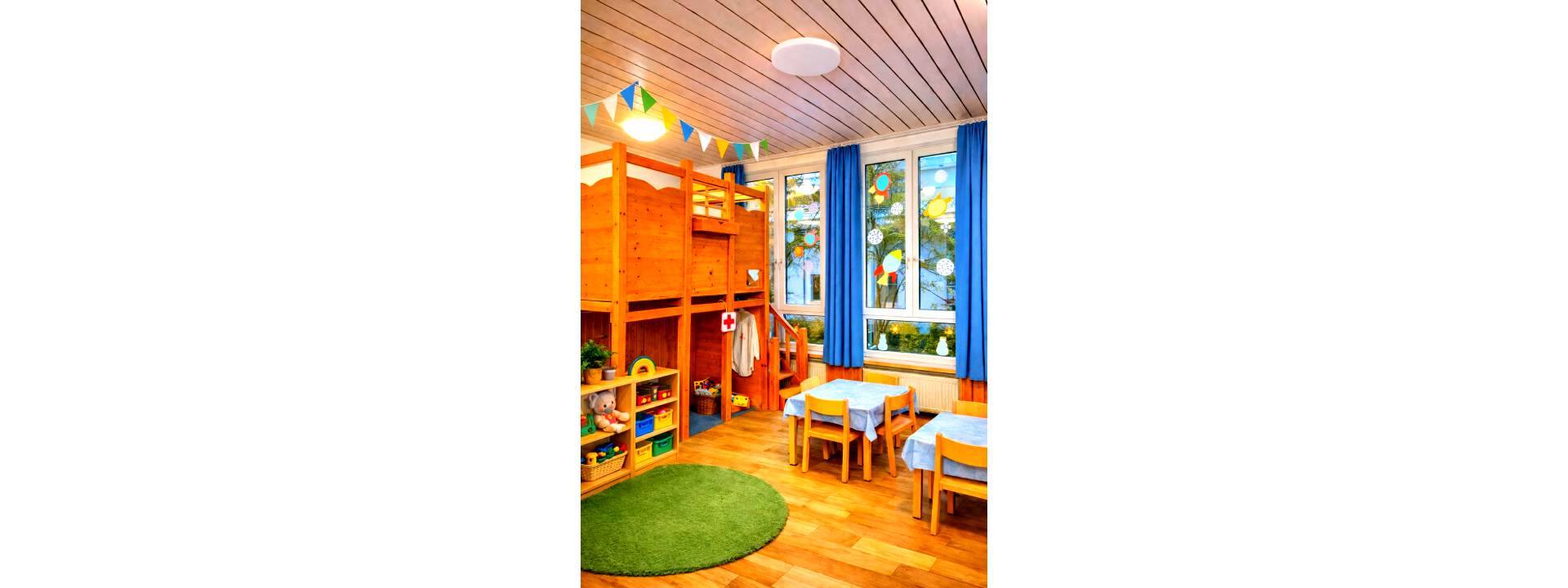 Unsere Räume vermitteln Geborgenheit und wecken gleichzeitig Neugier. Klare Strukturen geben Orientierung, während kreative Impulse zum eigenständigen Entdecken anregen.